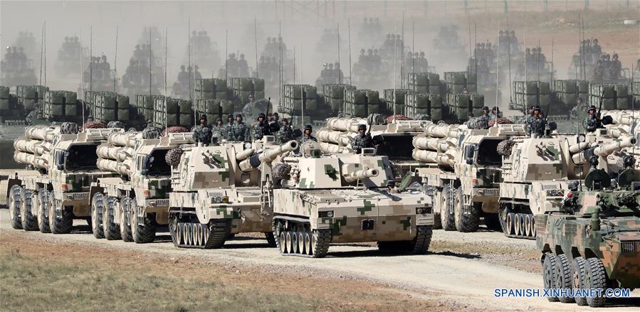 MONGOLIA INTERIOR, julio 30, 2017 (Xinhua) -- Vehículos de combate de infantería permanecen en formación durante un desfile militar en la base de entrenamiento de Zhurihe, en la Región Autónoma de Mongolia Interior, en el norte de China, el 30 de julio de 2017. China comenzó el domingo un gran desfile militar para conmemorar el 90 aniversario de la fundación del Ejército Popular de Liberación (EPL). (Xinhua/Yin Gang)