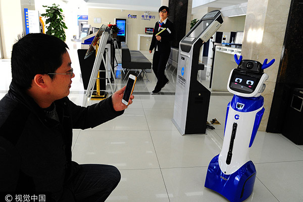 Un robot trabaja en una sucursal del Banco de la Construcción de China en Taicang, provincia de Jiangsu. [Foto: VCG]