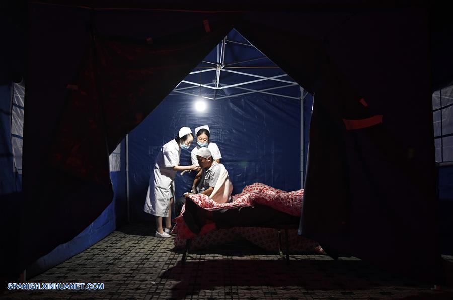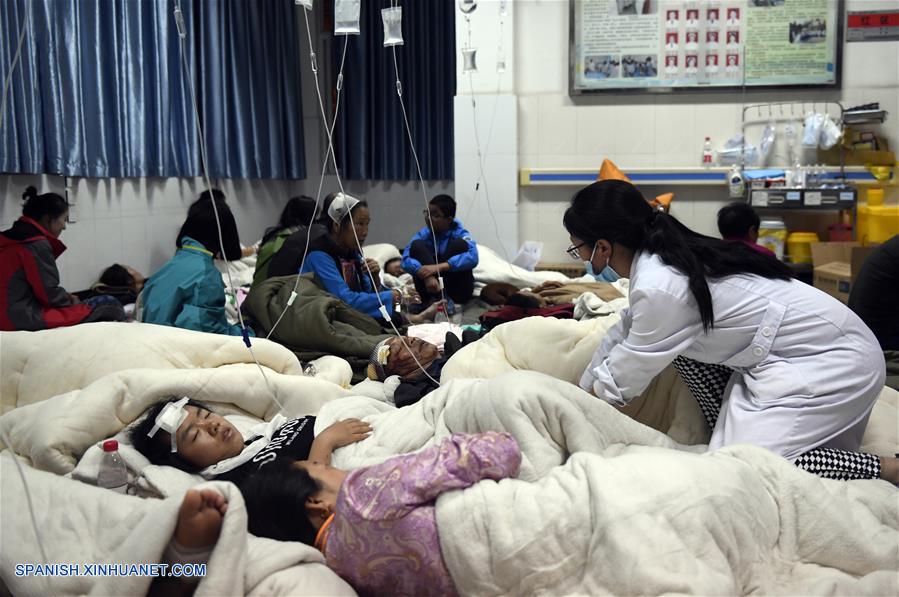 Residentes heridos reciben tratamiento médico en el Hospital Popular, en el condado de Jiuzhaigou, afectado por un sismo, en la provincia de Sichuan, en el suroeste de China, el 9 de agosto de 2017. (Xinhua/Liu Kun)