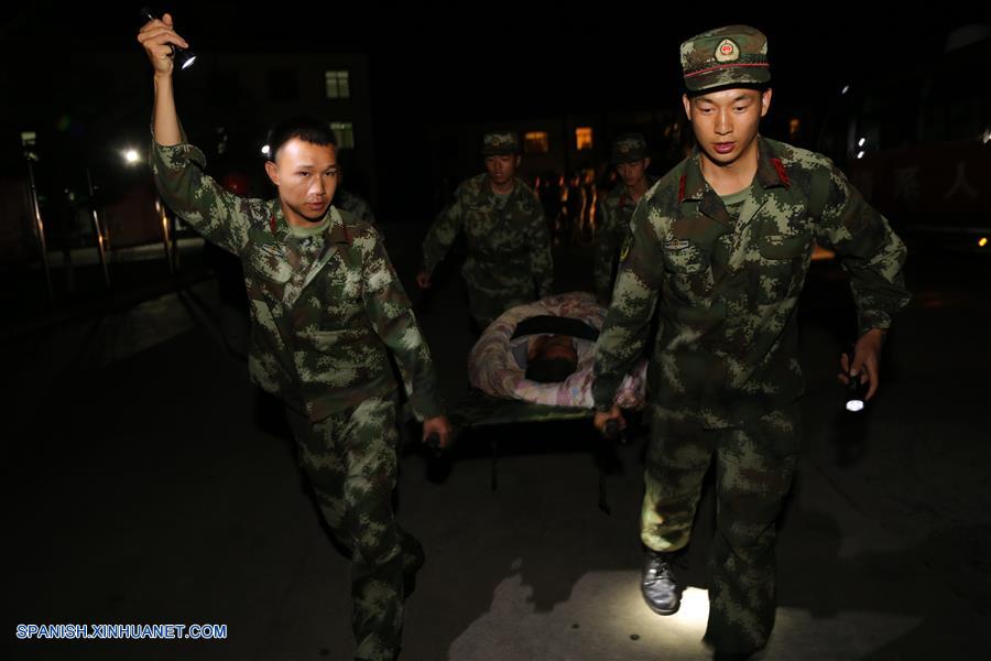 Rescatistas laboran en el condado de Jiuzhaigou afectado por un sismo, en la provincia de Sichuan, en el suroeste de China, el 8 de agosto de 2017. (Xinhua/Str)