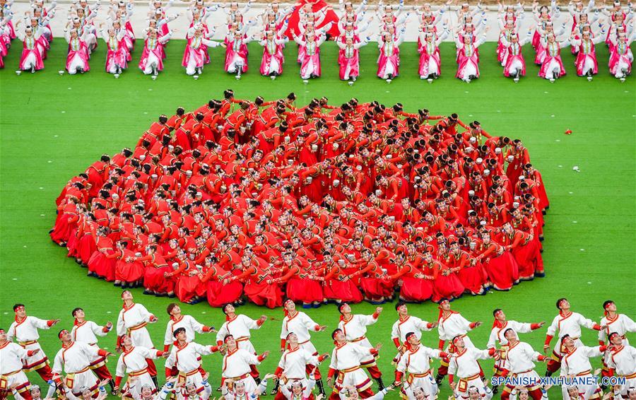 HOHHOT, agosto 8, 2017 (Xinhua) -- Bailarines actúan durante la celebración para conmemorar el 70 aniversario de la Región Autónoma de Mongolia Interior, en Hohhot, en la Región Autónoma de Mongolia Interior, en el norte de China, el 8 de agosto de 2017. (Xinhua/Lian Zhen)