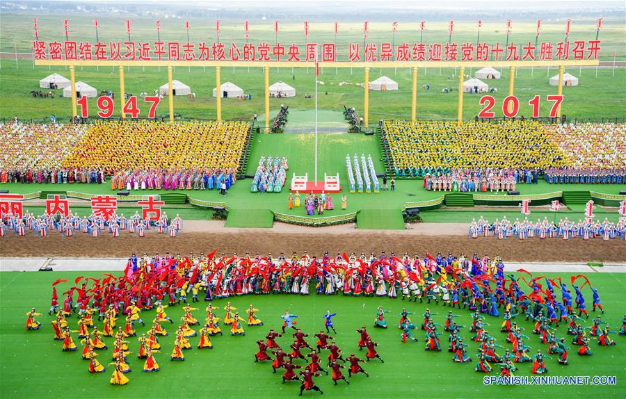 HOHHOT, agosto 8, 2017 (Xinhua) -- Vista de la celebración para conmemorar el 70 aniversario de la Región Autónoma de Mongolia Interior, en Hohhot, en la Región Autónoma de Mongolia Interior, en el norte de China, el 8 de agosto de 2017. (Xinhua/Lian Zhen)