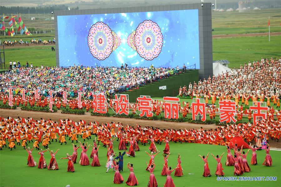 HOHHOT, agosto 8, 2017 (Xinhua) -- Vista de la celebración para conmemorar el 70 aniversario de la Región Autónoma de Mongolia Interior, en Hohhot, en la Región Autónoma de Mongolia Interior, en el norte de China, el 8 de agosto de 2017. (Xinhua/Chen Yehua)