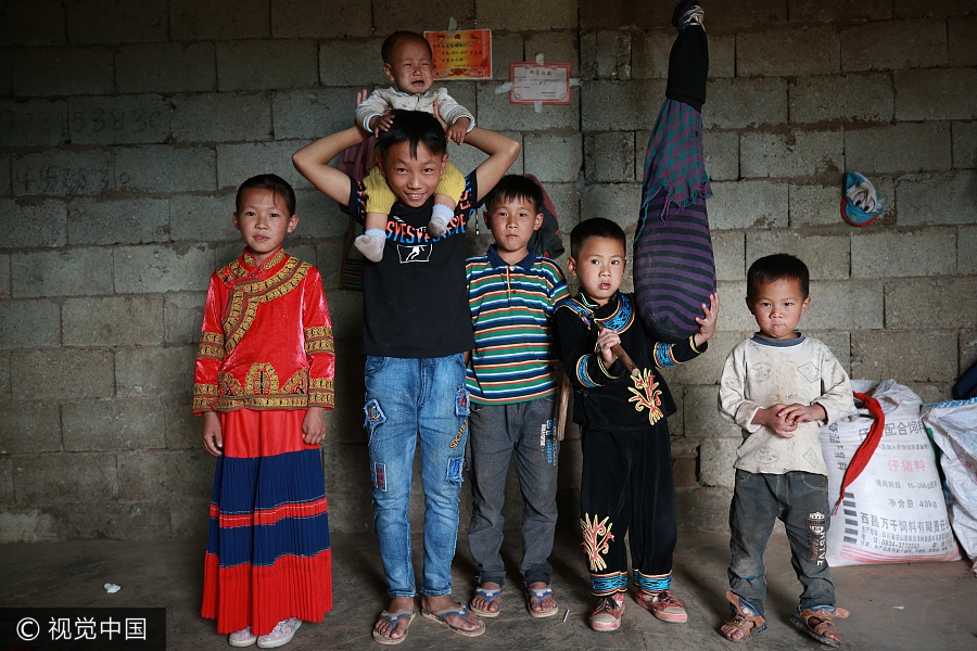 Xiabu Rihai es el cuarto hijo de la familia. Ellos acaban de trasladarse a su antigua casa en la monta?a. [Foto: VCG]