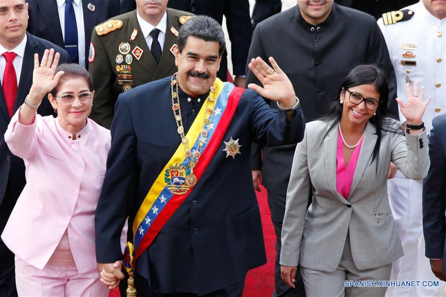 CARACAS, agosto 10, 2017 (Xinhua) -- El presidente venezolano, Nicolás Maduro (c), acompa?ado por su esposa y asambleísta de la Asamblea Nacional Constituyente (ANC), Cilia Flores (i), y la presidenta de la ANC, Delcy Rodríguez (d), llega para asistir a un evento de la ANC, en el Palacio Federal Legislativo, en Caracas, Venezuela, el 10 de agosto de 2017. El presidente de Venezuela, Nicolás Maduro, afirmó el jueves que su gobierno se subordina a la Asamblea Nacional Constituyente (ANC), que el pasado miércoles aprobó un decreto que obliga a los demás poderes públicos a acatar sus decisiones. "Como jefe de Estado, me subordino a los poderes constituyentes de esta Asamblea Nacional Constituyente", expresó Maduro durante un acto con los asambleístas en el Palacio Federal Legislativo de Caracas. (Xinhua/Boris Vergara)