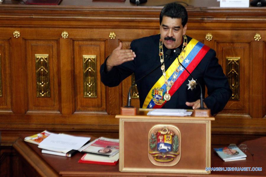 CARACAS, agosto 10, 2017 (Xinhua) -- El presidente venezolano, Nicolás Maduro, pronuncia un discurso durante un evento de la Asamblea Nacional Constituyente (ANC), en el Palacio Federal Legislativo, en Caracas, Venezuela, el 10 de agosto de 2017. El presidente de Venezuela, Nicolás Maduro, afirmó el jueves que su gobierno se subordina a la Asamblea Nacional Constituyente (ANC), que el pasado miércoles aprobó un decreto que obliga a los demás poderes públicos a acatar sus decisiones. "Como jefe de Estado, me subordino a los poderes constituyentes de esta Asamblea Nacional Constituyente", expresó Maduro durante un acto con los asambleístas en el Palacio Federal Legislativo de Caracas. (Xinhua/Boris Vergara)