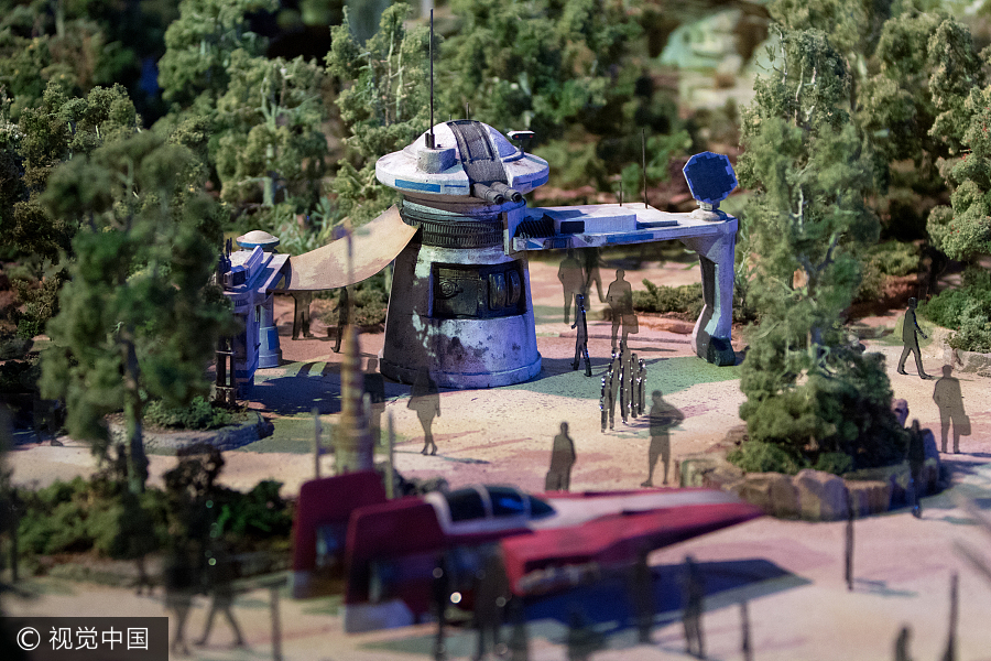 Inauguración del modelo 3-D del parque temático de la "Guerra de las Galaxias" de Disney previo a la Expo D23 en Anaheim, California, 13 de julio de 2017.[Foto: VCG]