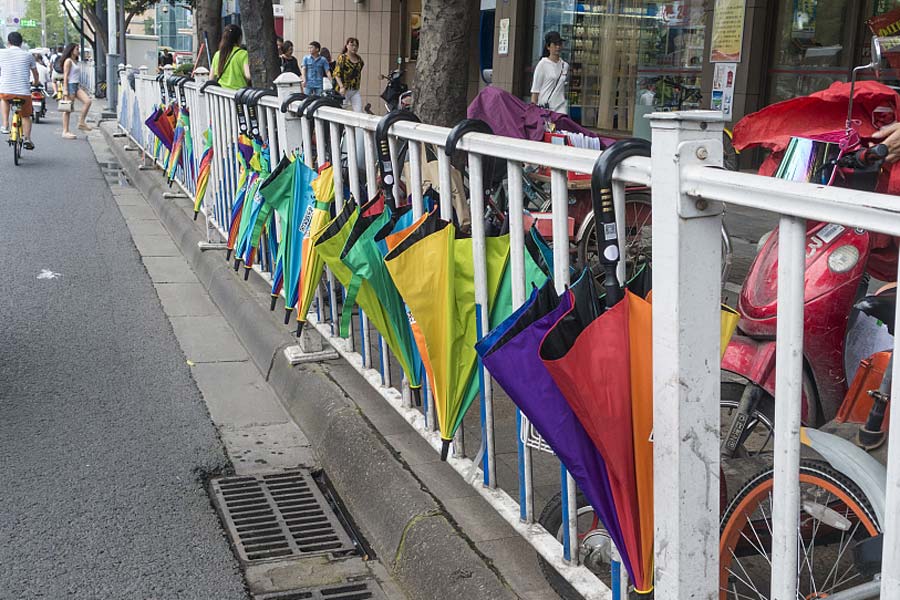 Paraguas compartidos en una calle en Chengdu, el 15 de julio de 2017. [Foto / VCG]