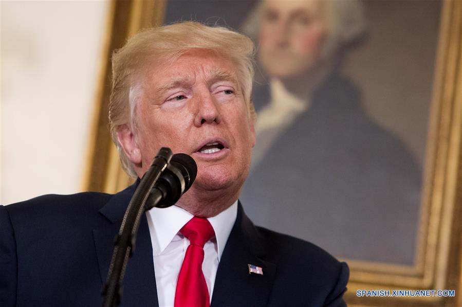 El presidente estadounidense Donald Trump, pronuncia un discurso en la Casa Blanca, en Washington D.C., Estados Unidos, el 14 de agosto de 2017. El presidente de Estados Unidos, Donald Trump, emitió el lunes una condena más enérgica en contra de los nacionalistas blancos que el fin de semana organizaron una letal protesta, luego de que sus declaraciones previas generaron críticas por su falta de contundencia. (Xinhua/Chris Kleponis/CNP/ZUMAPRESS)