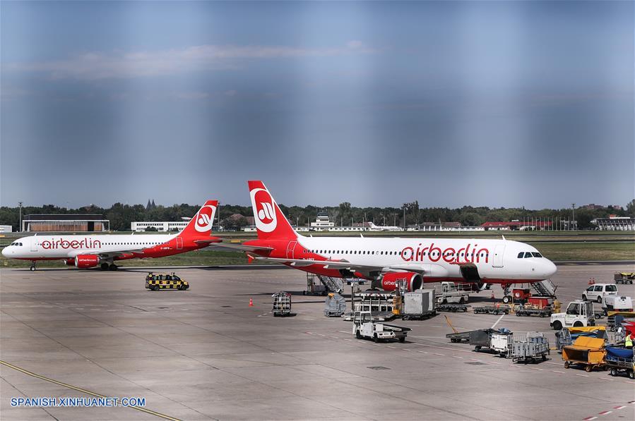 Aviones de Air Berlin permanecen en el Aeropuerto Internacional Tegel, en Berlín, Alemania, el 15 de agosto de 2017. (Xinhua/Shan Yuqi)
