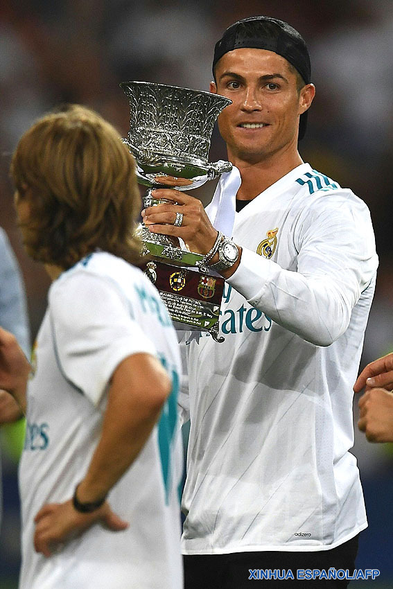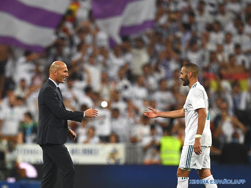 MADRID, 16 ago (Xinhua) -- Con goles del francés Karim Benzema y del espa?ol Marco Asensio, el Real Madrid derrotó hoy al Barcelona por 2-0 (5-1 en el global) y con ello se proclamó campeón de la Supercopa de Espa?a en el estadio Santiago Bernabéu ante 75.000 espectadores.