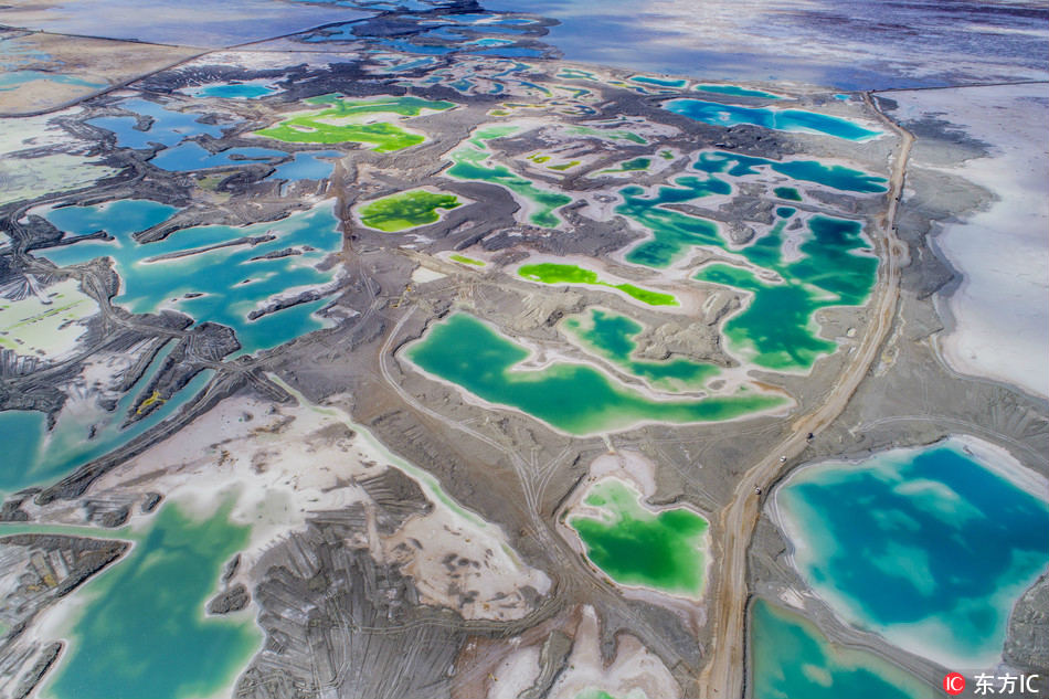 El Lago Qinghai Lake es conocido como el "Lago Esmeralda", "Mar Azul" o incluso "Cuento de Hadas", debido a sus maravillosos colores naturales. El lago salado más grande de China se encuentra al noreste del Lago Qaidam, diez kilómetros al noroeste de Da Qaidam, 3 de agosto de 2017. [Foto: IC]