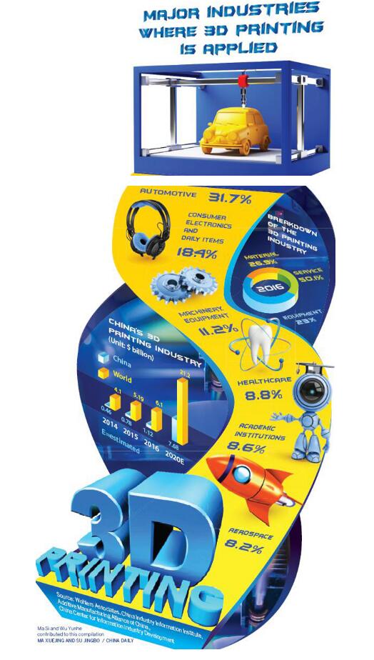 Se espera que la industria de la impresión en 3D de China alcance los 7,68 mil millones de dólares en valor de producción, o un tercio del mercado global en 2020, según un pronóstico del Instituto de Información de la Industria de China.
