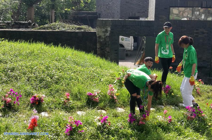 SICHUAN, agosto 23, 2017 (Xinhua) -- Empleados decoran el área de alojamiento del panda gigante Bao Bao, en el Centro de Conservación e Investigación de China para Pandas Gigantes, en la ciudad de Dujiangyan, provincia de Sichuan, en el suroeste de China, el 23 de agosto de 2017. Bao Bao, una hembra de panda gigante nacida en Estados Unidos, celebró el miércoles su cuarto cumplea?os en la provincia de Sichuan. El personal de la base Dujiangyan del Centro de Conservación e Investigación de China para Pandas Gigantes preparó un pastel de cumplea?os de 50 kilos, hecho de bambú, zanahorias, bollos al vapor y manzanas. Bao Bao nació el 23 de agosto de 2013 en el Zoológico Nacional Smithsonian, en Washington D. C., el segundo ejemplar que nace allí. (Xinhua/Yang Di)