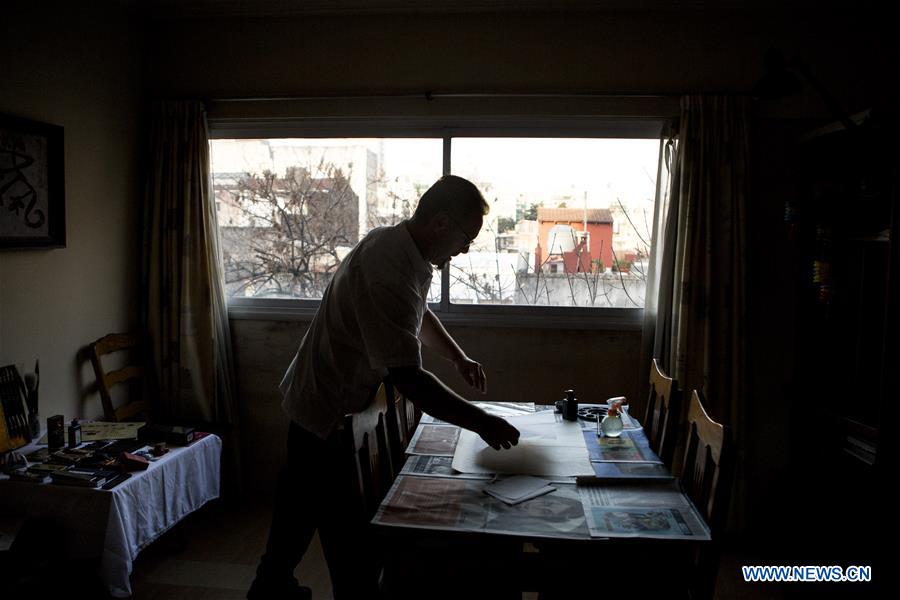 Foto del 18 de agosto de 2017 muestra al artista argentino Martin Mazia en Buenos Aires, capital de Argentina preparándose para realizar una pintura china. Mazia, que ahora ense?a caligrafía y pintura china, así como idioma chino, comenzó a estudiar arte chino hace más de 15 a?os y ha expuesto sus obras en muchos países, entre ellos Argentina y Colombia. Esas obras sirven como vínculo cultural entre América Latina y China. [Foto / Xinhua]
