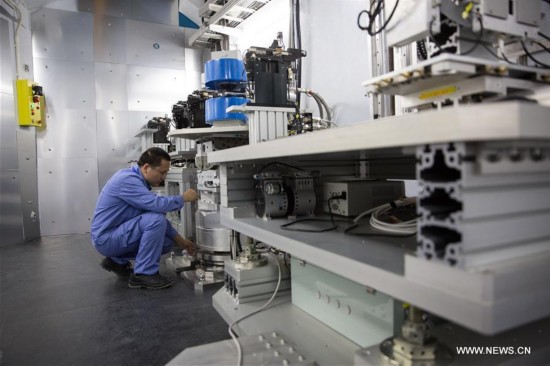 Foto del 1 de septiembre de 2017 muestra a ingenieros trabajando con un instrumento de la Fuente de Neutrones porEspalación” de China (CSNS) en Dongguan, provincia de Guangdong. Según una rueda de prensa celebrada el viernes en el Instituto de Física de Alta Energía de la Academia China de Ciencias en Dongguan, el 28 de agosto de 2017 se obtuvo por primera vez un rayo de neutrones en el CSNS, lo que marca la finalización de la construcción principal y el inicio de la fase de operación de pruebas para el proyecto CSNS, una gran instalación científica a nivel nacional. El proyecto debe estar completamente terminado y abierto a los usuarios chinos y extranjeros para el a?o 2018 según lo programado. (Xinhua / JinLiwang)