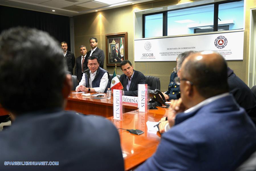 Imagen cedida por la Presidencia de México, del presidente mexicano Enrique Pe?a Nieto (c), reuniéndose con funcionarios tras el sismo en el Centro Nacional de Prevención de Desastres (Cenapred), en la Ciudad de México, capital de México, el 8 de septiembre de 2017. (Xinhua/Presidencia de México)