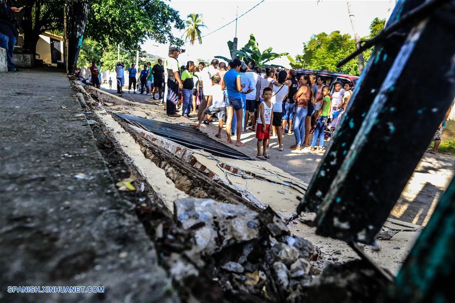GUERRERO, septiembre 8, 2017 (Xinhua) -- Personas se reúnen cerca de la barda colapsada de la primaria Juan N. Alvarez después del sismo, en Acapulco, estado de Guerrero, México, el 8 de septiembre de 2017. (Xinhua/David Guzmán)