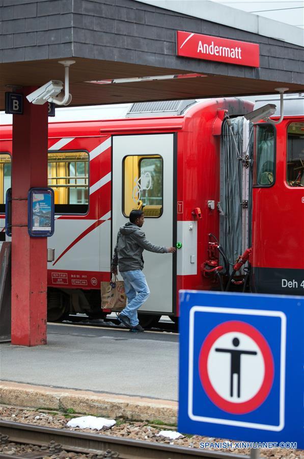 Un tren permanece en la plataforma de la estación de trenes de Andermatt en el cantón de Uri, Suiza, el 11 de septiembre de 2017. Al menos 27 personas resultaron heridas el lunes por el choque de dos trenes ocurrido en la aldea de Andermatt, en el sur de Suiza, a las 11:30 hora local, dijo la policía local. (Xinhua/Xu Jinquan)