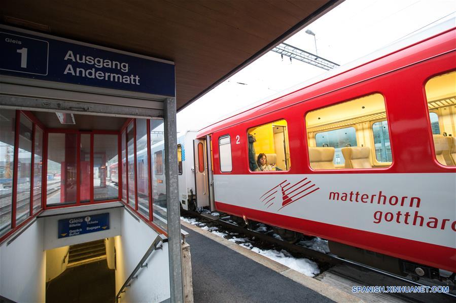 Un tren permanece en la plataforma de la estación de trenes de Andermatt en el cantón de Uri, Suiza, el 11 de septiembre de 2017. Al menos 27 personas resultaron heridas el lunes por el choque de dos trenes ocurrido en la aldea de Andermatt, en el sur de Suiza, a las 11:30 hora local, dijo la policía local. (Xinhua/Xu Jinquan)