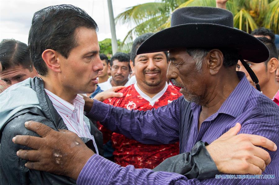 Imagen cedida por la Presidencia de México, del presidente mexicano, Enrique Pe?a Nieto (i), conversando con un residente durante un recorrido por las zonas afectadas por el sismo, en Tonalá, estado de Chiapas, México, el 11 de septiembre de 2017. La reconstrucción de las viviendas da?adas por el terremoto del pasado jueves en los estados de Chiapas y Oaxaca comenzará la próxima semana, anunció el lunes el presidente de México, Enrique Pe?a Nieto. (Xinhua/Presidencia de Méixco)