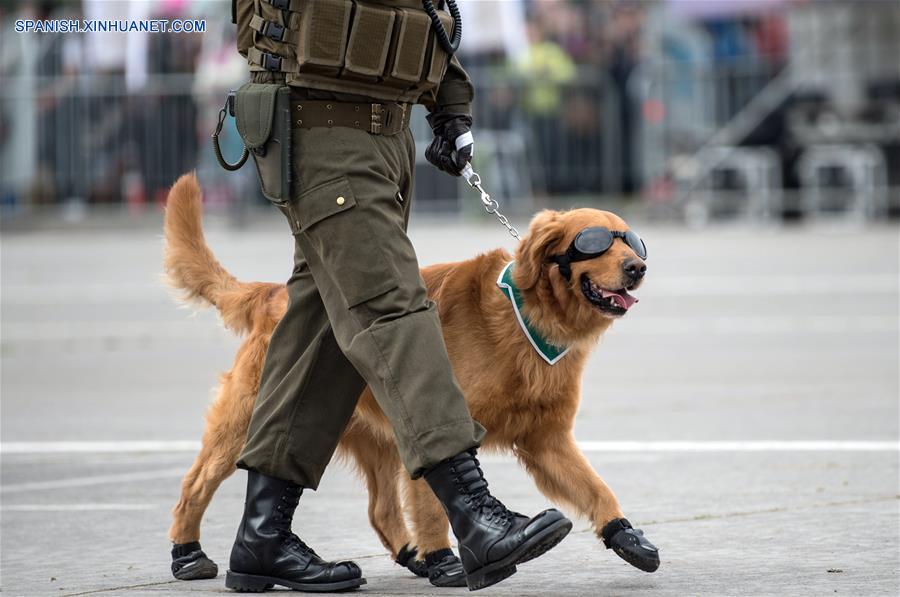Un miembro de los carabineros de Chile participa junto a un perro durante la Gran Parada Militar en Honor a las Glorias del Ejército 2017, en Santiago, capital de Chile, el 19 de septiembre de 2017. Más de 7,000 efectivos uniformados de las Fuerzas Armadas de Chile desfilaron el martes durante la Parada Militar 2017, una ceremonia anual encabezada por la presidenta del país, Michelle Bachelet, en el Parque O'Higgins de Santiago. (Xinhua/Jorge Villegas)