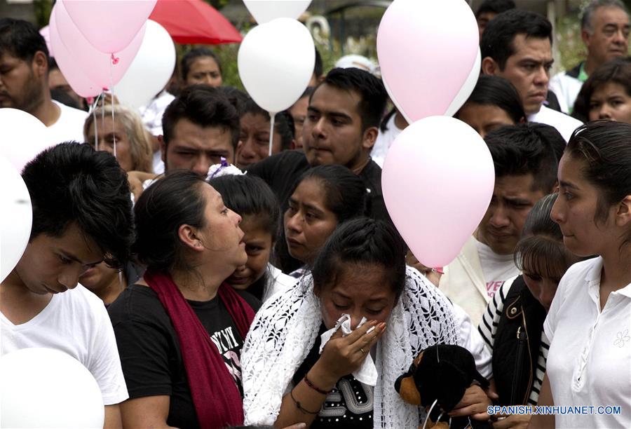 MEXICO, 21 sep (Xinhua) -- Ni?os vestidos de blanco sostenían decenas de globos y flores blancas para despedir a Naomi Martínez, una ni?a de 4 a?os que murió durante el sismo de 7,1 grados en San Gregorio Atlapulco, un poblado en el sureste de la Ciudad de México.