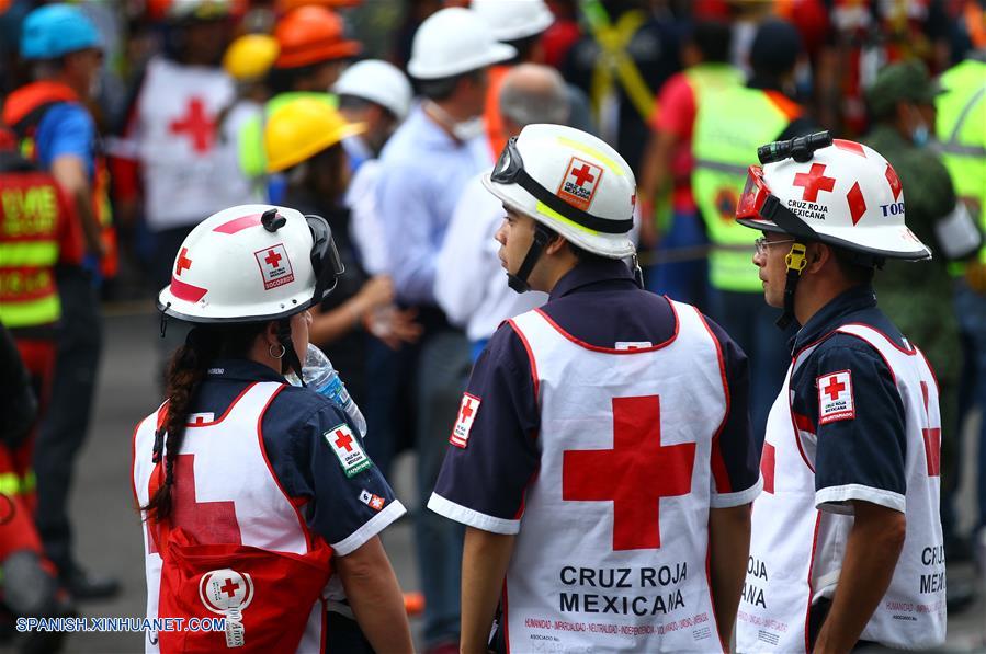 CIUDAD DE MEXICO, septiembre 24, 2017 (Xinhua) -- Voluntarios reaccionan durante las labores de búsqueda y rescate en un edificio colapsado en Alvaro Obregón 286 luego de un sismo, en la Ciudad de México, capital de México, el 24 de septiembre de 2017. El gobierno de México actualizó hoy a 320 el número de muertos por el terremoto de 7,1 grados en la escala Richter registrado el pasado 19 de septiembre en el centro del país. (Xinhua/Str)