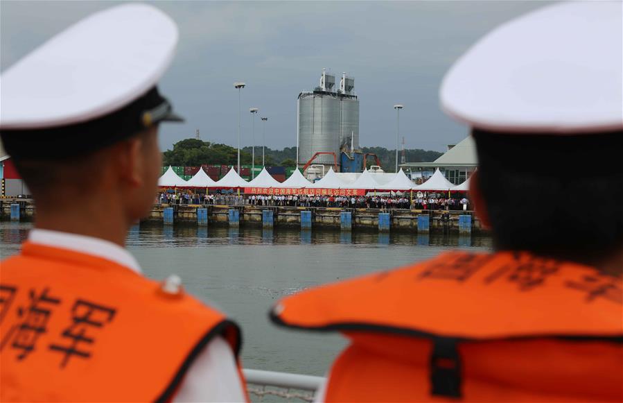 La flota naval china atracó en el mayor puerto de Brunei, en donde recibió una cálida bienvenida de parte de la armada y funcionarios gubernamentales bruneanos y de funcionarios de la embajada de China y de chinos que viven en el sultanato.