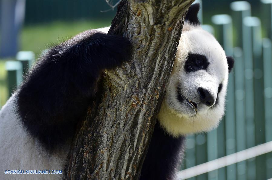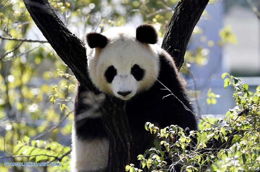 LIAONING, septiembre 27, 2017 (Xinhua) -- Un panda juega en el Jardín Zoológico Forestal de Shenyang, en Shenyang, capital de la provincia de Liaoning, en el noreste de China, el 27 de septiembre de 2017. Después de un periodo de adaptación, cuatro pandas que fueron trasladados de la provincia de Sichuan, en el suroeste de China, hicieron su debut el miércoles en el Jardín Zoológico Forestal de Shenyang. (Xinhua/Long Lei)
