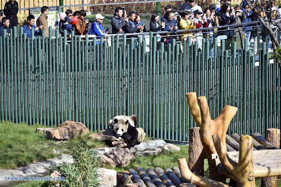 LIAONING, septiembre 27, 2017 (Xinhua) -- Turistas visitan el jardín del panda en el Jardín Zoológico Forestal de Shenyang, en Shenyang, capital de la provincia de Liaoning, en el noreste de China, el 27 de septiembre de 2017. Después de un periodo de adaptación, cuatro pandas que fueron trasladados de la provincia de Sichuan, en el suroeste de China, hicieron su debut el miércoles en el Jardín Zoológico Forestal de Shenyang. (Xinhua/Long Lei)