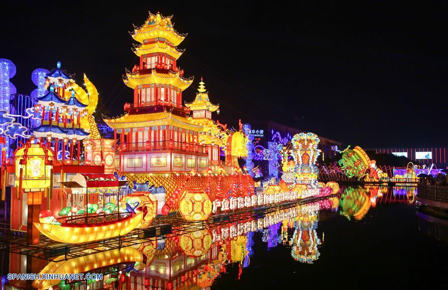 ZHEJIANG, septiembre 27, 2017 (Xinhua) -- Vista de un conjunto de linternas sobre el agua durante un festival de la linterna, en Haining, provincia de Zhejiang, en el este de China, el 27 de septiembre de 2017. Un festival de la linterna es llevado a cabo en Haining para celebrar el próximo Día Nacional y el Festival del Medio Oto?o. (Xinhua/Zhang Cheng)