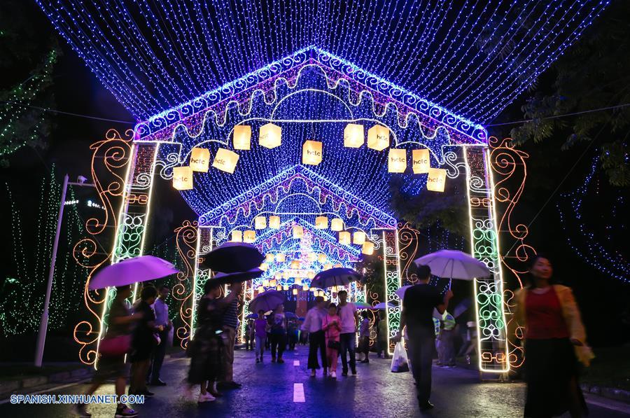 ZHEJIANG, septiembre 27, 2017 (Xinhua) -- Personas visitan un festival de la linterna, en Haining, provincia de Zhejiang, en el este de China, el 27 de septiembre de 2017. Un festival de la linterna es llevado a cabo en Haining para celebrar el próximo Día Nacional y el Festival del Medio Oto?o. (Xinhua/Zhang Cheng)