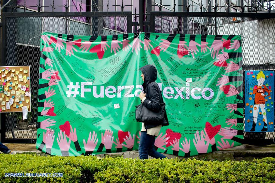 CIUDAD DE MEXICO, septiembre 29, 2017 (Xinhua) -- Una mujer camina frente a una manta con mensajes de apoyo a las víctimas del sismo del 19 de septiembre, en la colonia Roma en la Ciudad de México, capital de México, el 29 de septiembre de 2017. (Xinhua/Francisco Ca?edo)