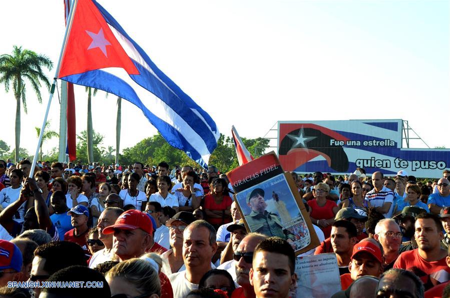 SANTA CLARA, octubre 8, 2017 (Xinhua) -- Personas asisten al acto de homenaje al comandante Ernesto "Che" Guevara, a 50 a?os de su muerte en Bolivia, en Santa Clara, Cuba, el 8 de octubre de 2017. El presidente cubano Raúl Castro rindió el domingo homenaje al mítico comandante guerrillero cubano-argentino Ernesto "Che" Guevara, cuya caída en combate cumple 50 a?os. En la explanada ubicada frente al Memorial se realizaba el acto de homenaje a Guevara, conocido en la isla como el "Guerrillero Heroico", a 50 a?os de su muerte en Bolivia y a dos décadas de la llegada de sus restos a Cuba. (Xinhua/Joaquín Hernández)