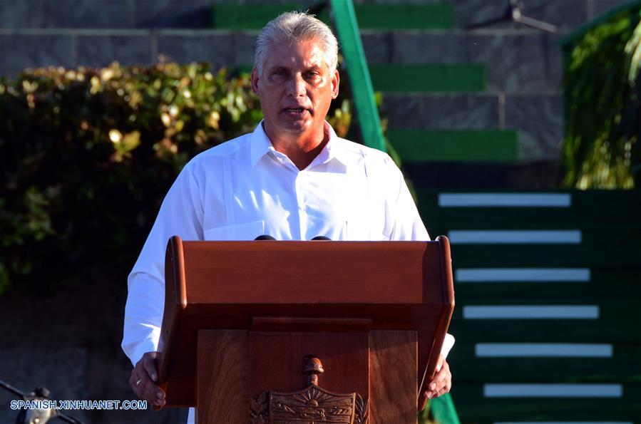 SANTA CLARA, octubre 8, 2017 (Xinhua) -- El primer vicepresidente de Cuba, Miguel Díaz-Canel, pronuncia un discurso durante el acto de homenaje al comandante Ernesto "Che" Guevara, a 50 a?os de su muerte en Bolivia, en Santa Clara, Cuba, el 8 de octubre de 2017. El presidente cubano Raúl Castro rindió el domingo homenaje al mítico comandante guerrillero cubano-argentino Ernesto "Che" Guevara, cuya caída en combate cumple 50 a?os. En la explanada ubicada frente al Memorial se realizaba el acto de homenaje a Guevara, conocido en la isla como el "Guerrillero Heroico", a 50 a?os de su muerte en Bolivia y a dos décadas de la llegada de sus restos a Cuba. (Xinhua/Joaquín Hernández)