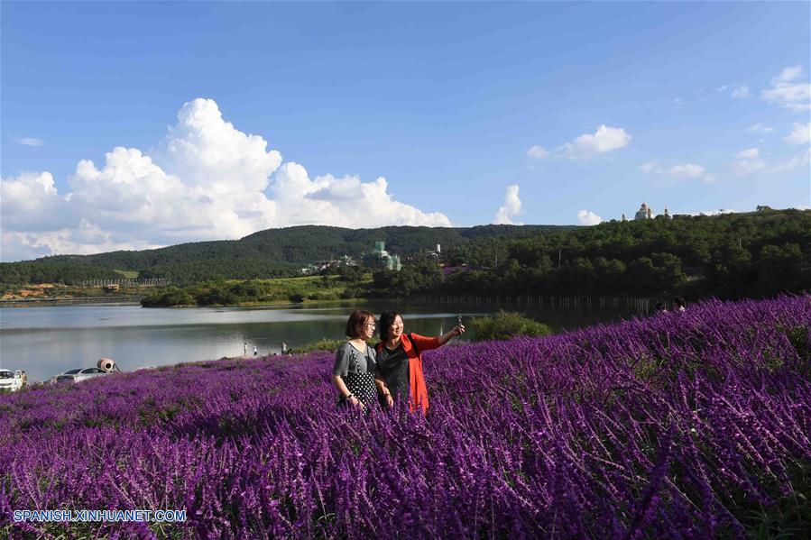 YUNNAN, octubre 4, 2017 (Xinhua) -- Turistas posan en el punto escénico de la bahía Longfeng, en el condado de Xundian, en la provincia de Yunnan, en el suroeste de China, el 4 de octubre de 2017. El punto escénico atrajo a muchos turistas durante las vacaciones por el Día Nacional. (Xinhua/Yang Zongyou)