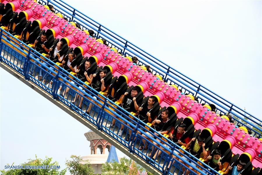 LIUZHOU, octubre 8, 2017 (Xinhua) -- Imagen del 4 de octubre de 2017, de turistas divirtiéndose en un parque temático en Liuzhou, en la Región Autónoma Zhuang de Guangxi, en el sur de China. China fue testigo de más de 710 millones de viajes turísticos durante los feriados de ocho días del Día Nacional y el Medio Oto?o, llegando a cerca de 590 mil millones de yuanes (88.68 mil millones de dólares estadounidenses) en ingresos del turismo, de acuerdo con la Administración Nacional de Turismo. (Xinhua/Wang Zichuang)