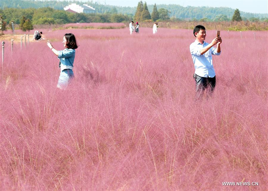 Turistas toman fotos en un campo de Anji, provincia de Zhejiang, el 9 de octubre del 2017. (Foto: Xia Pengfei)