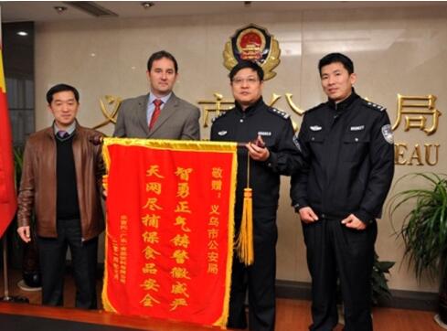 En 2014, un encargado del Grupo DANONE de Francia regaló una bandera bordada a la policía de China para agradecer que esta institución destapara un caso de violación contra la patente de una bebida de su marca.