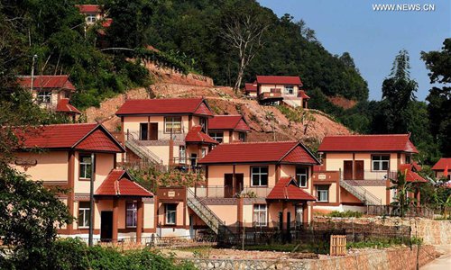Nuevas residencias en la aldea Yangluo para la minoría étnica Wa, en Pu'er, provincia de Yunnan. En los últimos cinco a?os, 527,000 personas han logrado salir de la pobreza. En agosto del 2017, aún 358,000 permanecían en esta desdichada condición. 22 de septiembre del 2016. (Foto: Xinhua)