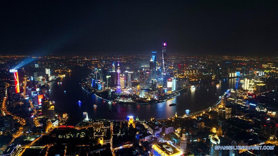 SHANGHAI, octubre 16, 2017 (Xinhua) -- Imagen del 15 de abril de 2017, de la vista nocturna de Lujiazui en Shanghai, en el este de China. El Yangtze, el tercer río más largo del mundo, atraviesa nueve provincias chinas y dos municipalidades, cubriendo 2.05 millones de kilómetros cuadrados. El Cinturón Económico del Río Yangtze, que representa más del 40 por ciento de la población nacional y el Producto Interno Bruto (PIB), es un nuevo motor de crecimiento para el país, reduciendo la brecha de desarrollo entre las regiones del este, oeste y centro. (Xinhua/Ding Ting)