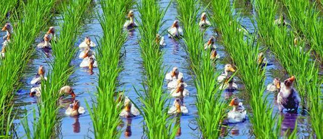 En el condado Baiquan de Qiqihar, en la provincia de Heilongjiang, se encuentra la "Base de Demostración de Arroz Orgánico con Patos de Arrozales de la provincia de Heilongjiang", donde cada arrozal tiene entre 25 y 30 patosllenos de vitalidad, saludables, rápidos y con un alto valor nutritivo. Imagen del Diario Heilongjiang