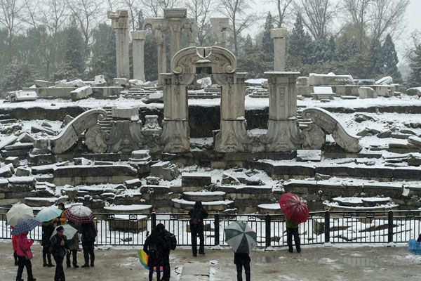 Visitantes en el sector Dashuifa del Yuanmingyuan, Beijing. [Foto: Xinhua]