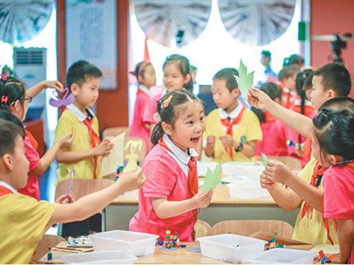 Los ni?os de una escuela rural del distrito Nanhu, en la ciudad de Jiaxing, durante su clase de artesanía. (Foto: Diario del Pueblo)