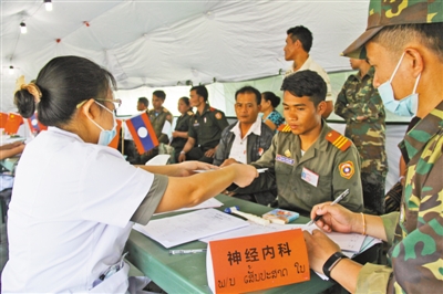Un grupo médico de China realiza consultas médicas a los habitantes locales en una carpa del hospital de una peque?a ciudad al norte de Laos, en julio de 2017.