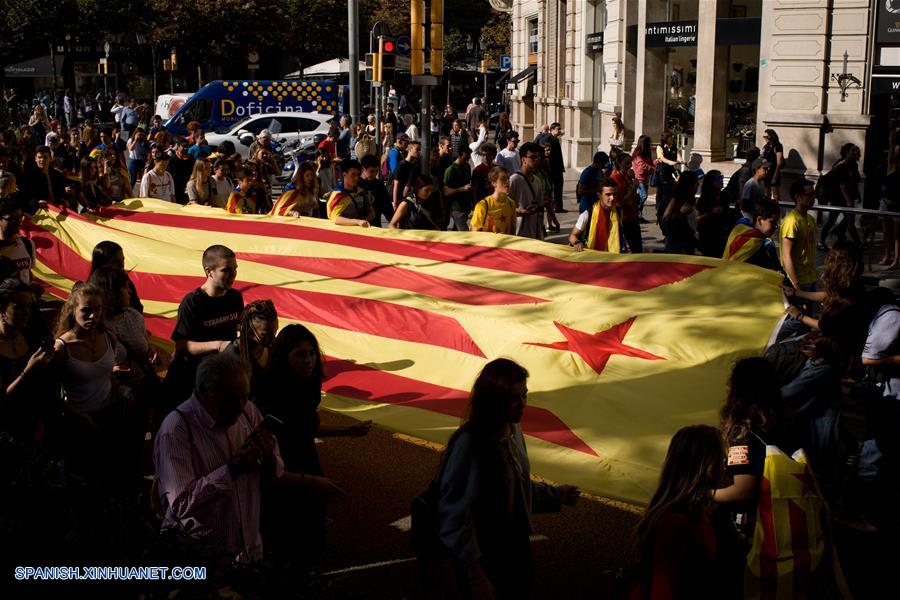 Personas participan durante una marcha en apoyo a la independencia de Catalu?a, en Barcelona, Espa?a, el 26 de octubre de 2017. (Xinhua/Jordi Boixareu/ZUMAPRESS)