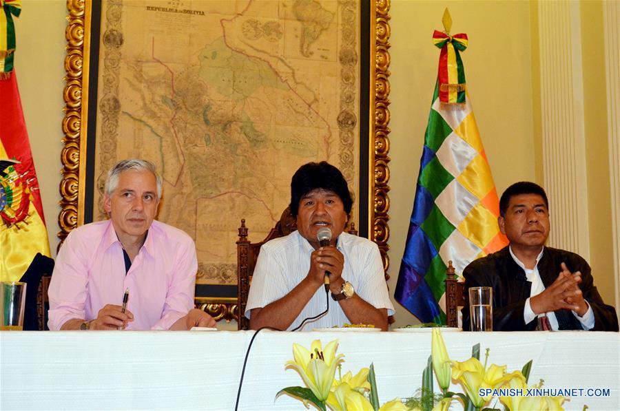 El presidente de Bolivia, Evo Morales (c), encabeza la reunión de Gabinete ampliado, en La Paz, Bolivia, el 28 de octubre de 2017. El presidente de Bolivia, Evo Morales, pidió el sábado a su equipo de ministros, viceministros y directores extremar esfuerzos y un mayor compromiso para acelerar la inversión pública. En su intervención inicial durante la reunión de emergencia de evaluación, Morales manifestó su inconformidad por lo realizado en la gestión durante 2017 y consideró que eso afecta a la imagen del gobierno boliviano. (Xinhua/José Lirauze/ABI)