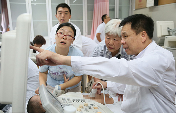 Un médico chino examina a un joven con un instrumento de diagnóstico ultrasónico en un hospital de Beijing, China. [Foto: IC]