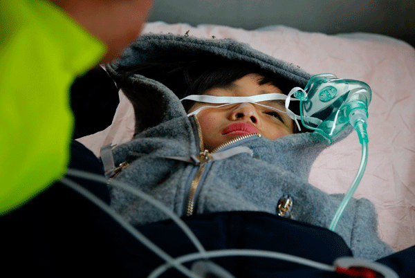 Una ambulancia traslada al hospital a Chen Xinyi, ni?a desaparecida que fue encontrada junto a dos ni?os desaparecidos el 19 de febrero del 2016 en Zhejiang. [Foto: Shen Zhicheng]